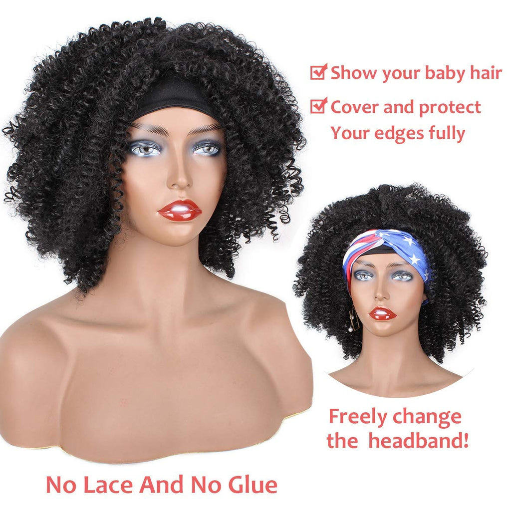 Headband Wig: headband half wig with wrap. Glueless wig cap,Comfortable & Breathable. |