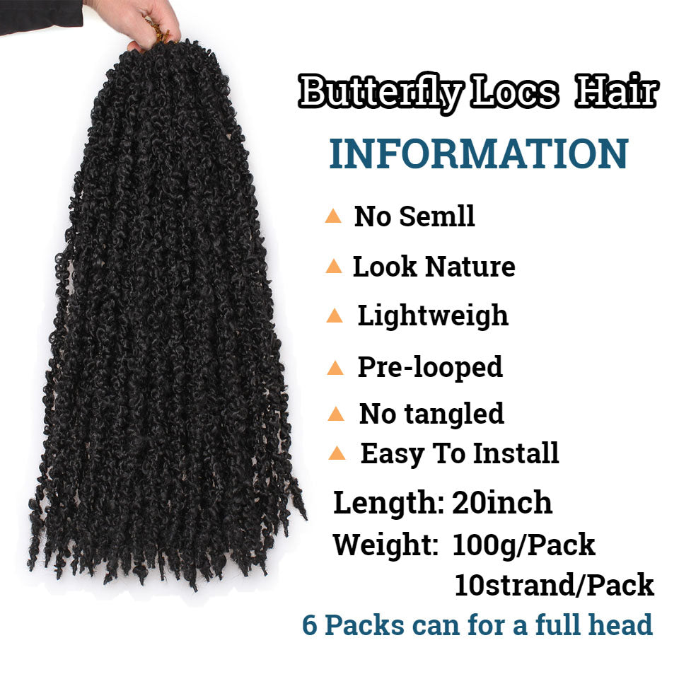 12"20"30 inch Butterfly Locs Crochet Hair Pre-looped Butterfly Soft Locs Crochet Braids Synthetic Braiding Hair